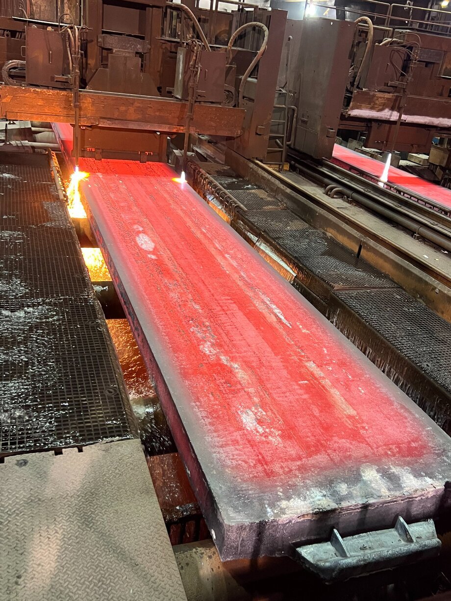 La première brame a été produite à 3h24 dans la nuit du 21 au 22 décembre pour un client grec. Longueur : 6 mètres, 1620 mm de large et une épaisseur de 229 mm.