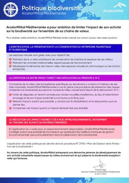 Fabriquer des produits responsables signifie pour nous que nous souhaitons produire des aciers avec une pratique éthique. C’est un engagement de l’entreprise au niveau mondial, que je prends aussi au nom du comité de direction d’ArcelorMittal Méditerranée et de ses équipes. Nous voulons développer le dialogue, préserver la nature et les ressources, protéger les salariés, assurer l’égalité des chances. .